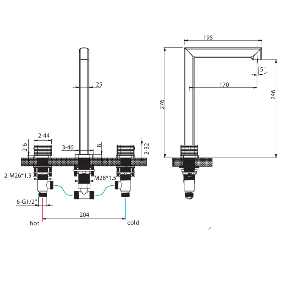 Grifo de lavabo alto bimando sobreencimera Firenze oro rosa cepillado de Imex