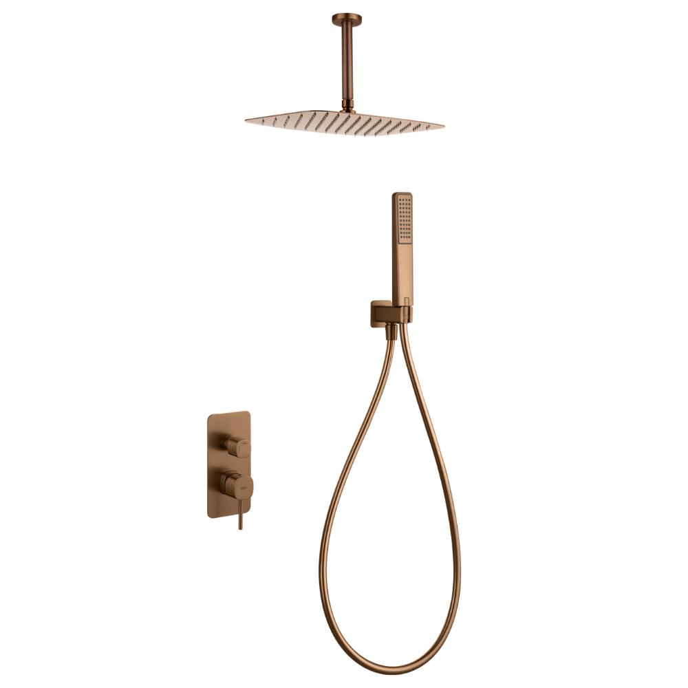 Conjunto de ducha monomando empotrado Sassari oro rosa cepillado de Imex