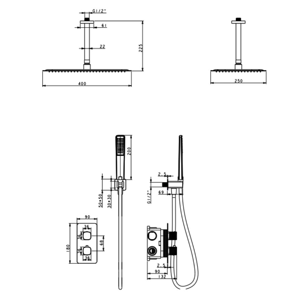 Conjunto de ducha termostático empotrado Sassari Black gun metal de Imex