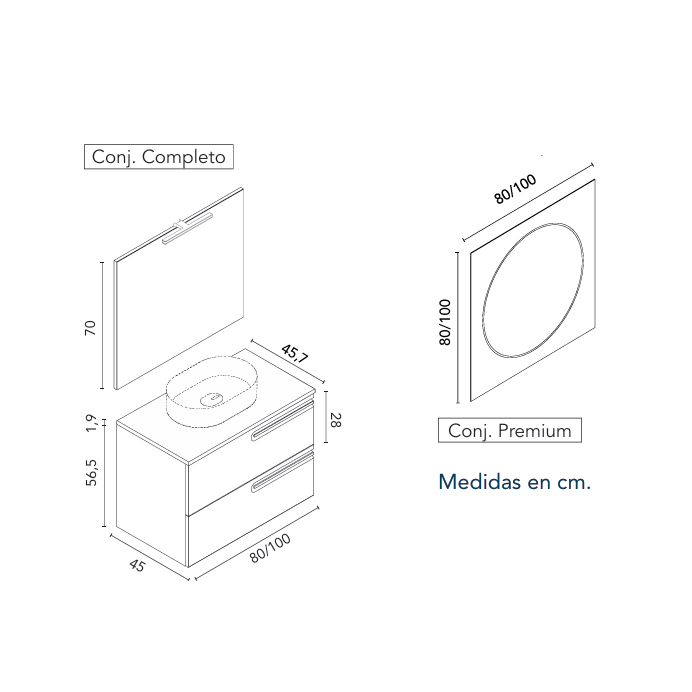 Mueble de baño Econic suspendido 2 cajones sobre encimera promocion de Royo