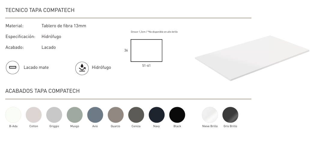 - Con lavabo Petit Cuadrado. Medidas: 29,3 (ancho) x 11,85 (alto).