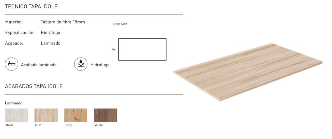 - Frentes: Fabricado en tablero de partículas de 19 mm.