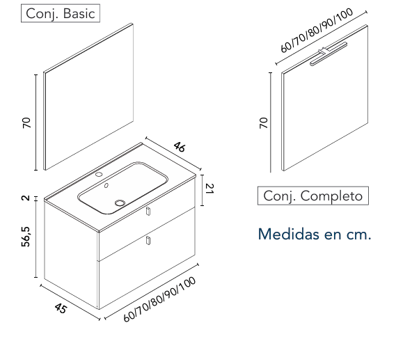 - Mueble + Lavabo cerámico Enzo blanco brillo + Espejo Murano. (Conjunto Basic)