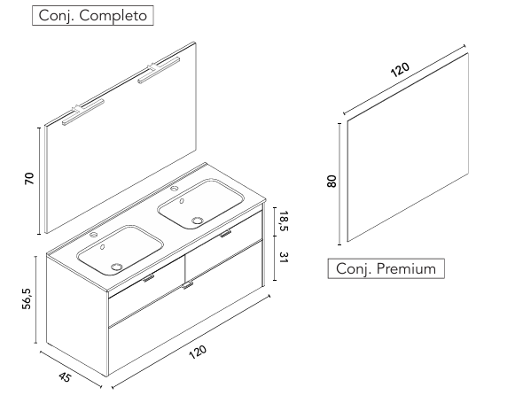 Mueble de baño Logika Compact suspendido 3 cajones doble seno promocion de Royo
