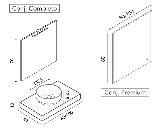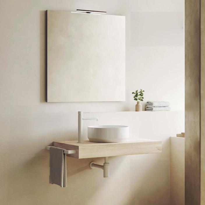 - Encimera Essence + Lavabo cerámico sobre encimera Nysa blanco brillo + Espejo Murano Liso + Aplique Lucce 30. (Conjunto Completo)