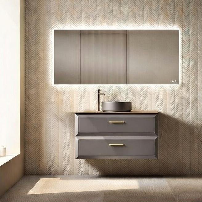 Mueble de baño Delta suspendido 2 cajones sobre encimera de Visobath con diferentes opciones