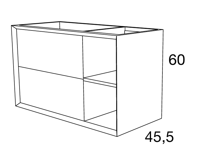 - Mueble de baño NOVUS con 2 cajones con 2 huecos suspendido. Disponible en 100/120 cm. Fondo 45,5 cm. Altura 60 cm.