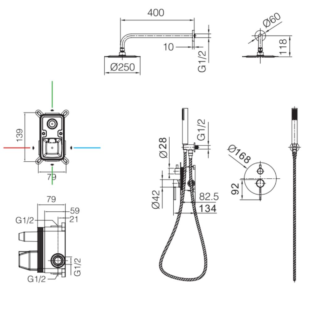 Grifo de ducha empotrado monomando Monza oro cepillado de IMEX