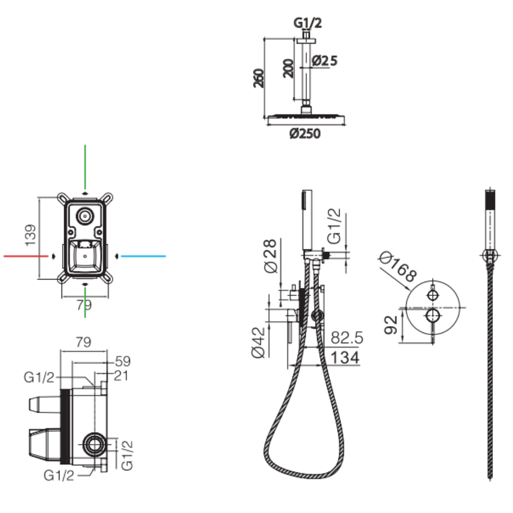 Grifo de ducha empotrado monomando TIVOLI oro rosa cepillado de IMEX