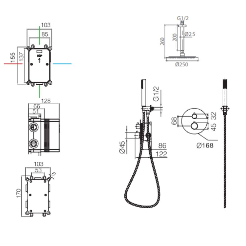 Grifo de ducha empotrado termostático TIVOLI black gun metal de IMEX