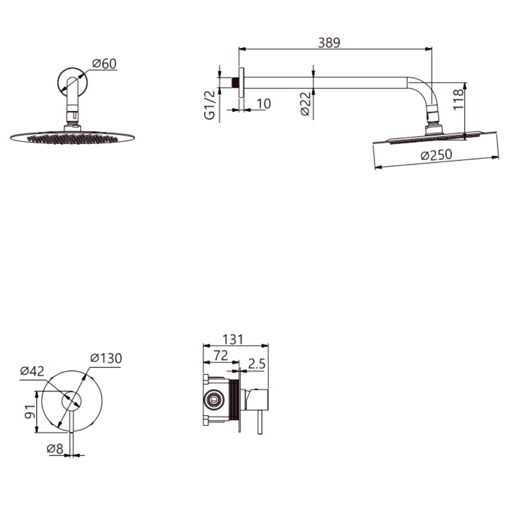 Grifo de ducha empotrado monomando MONZA níquel cepillado de IMEX