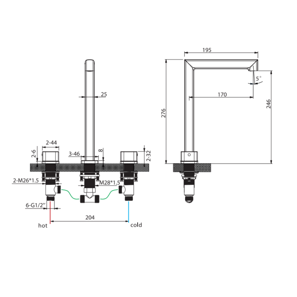 Grifo bimando de lavabo alto sobre encimera Toscana cromo de Imex