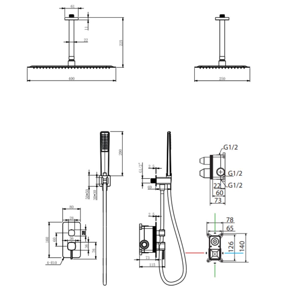 Conjunto de ducha empotrado monomando Arezzo negro mate de Imex
