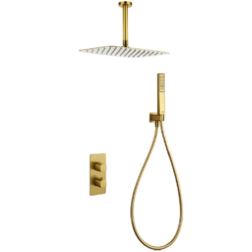 Conjunto de ducha empotrado termostático Arezzo oro cepillado de Imex