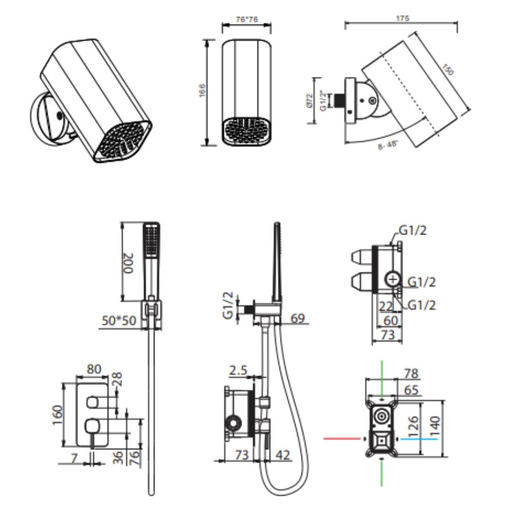 Conjunto de ducha empotrado monomando Toscana negro mate de Imex