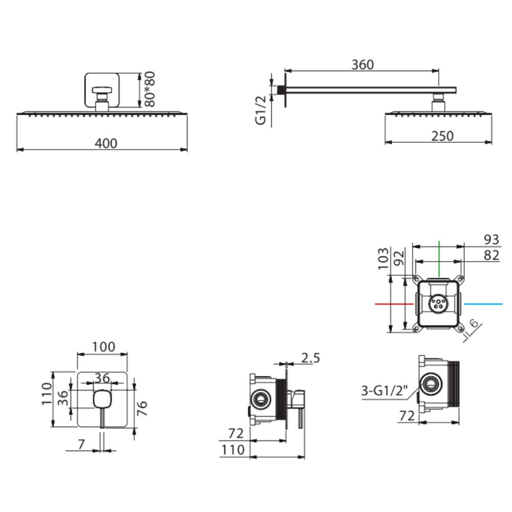 Conjunto de ducha 1 vía rociador Toscana oro rosa cepillado de Imex