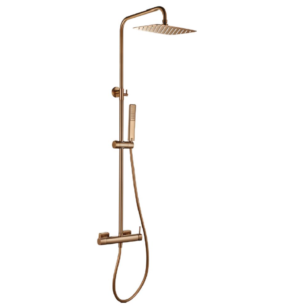 Conjunto barra de ducha monomando Firenze oro rosa cepillado de Imex