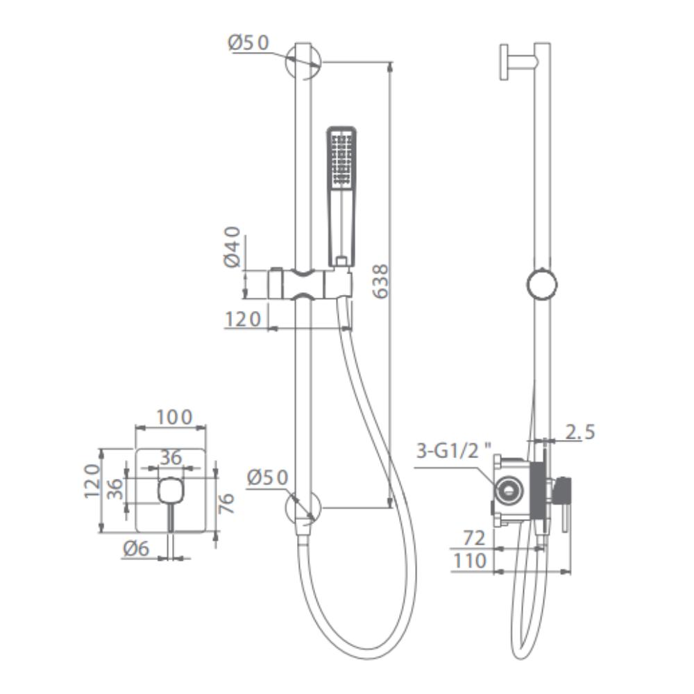 Set de ducha 1 vía barra con mango Firenze cromo de Imex