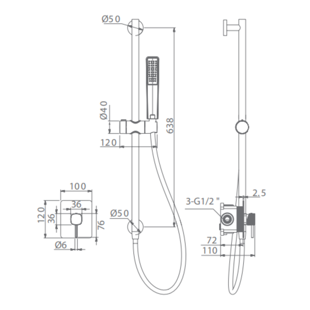 Set de ducha 1 vía barra con mango Firenze oro cepillado de Imex