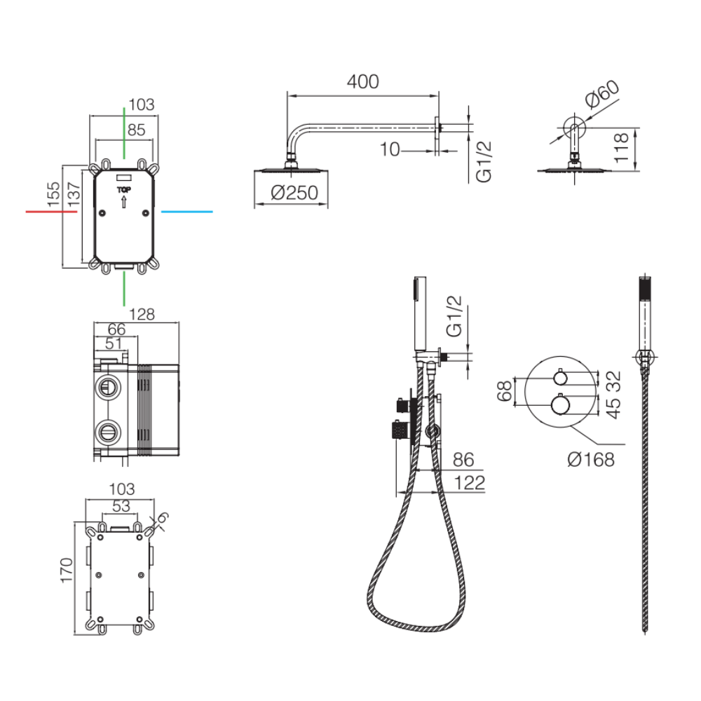 Conjunto de ducha empotrado termostático Genova de Imex