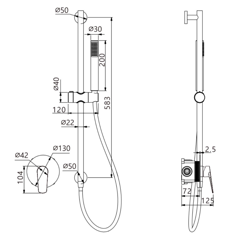 Set de ducha 1 vía barra con mango monomando Belgica de Imex
