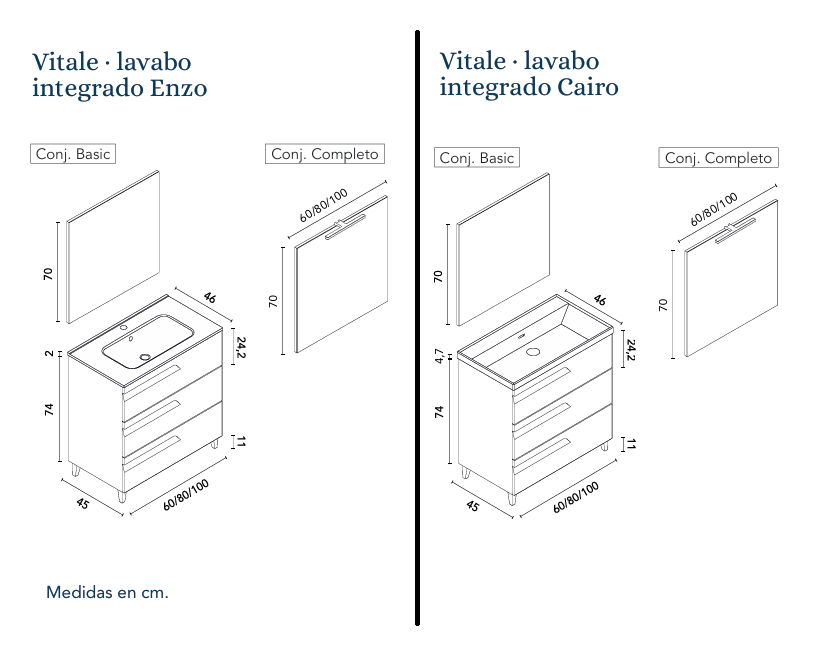 Mueble de baño Vitale con patas 3 cajones promocion de Royo